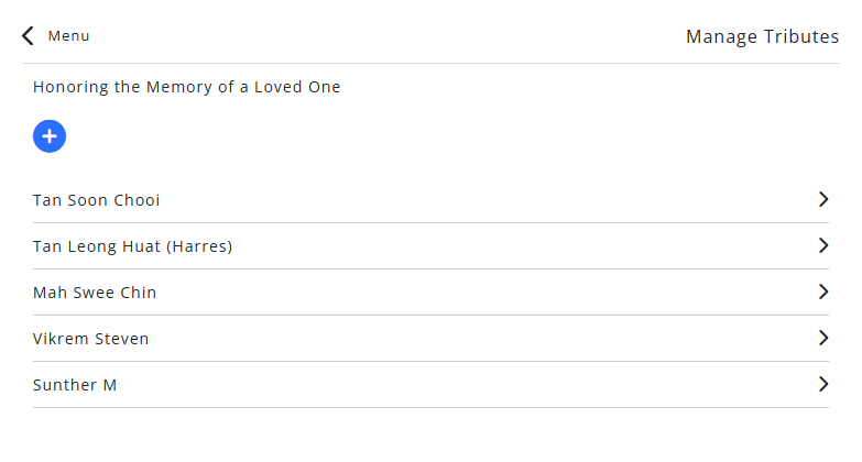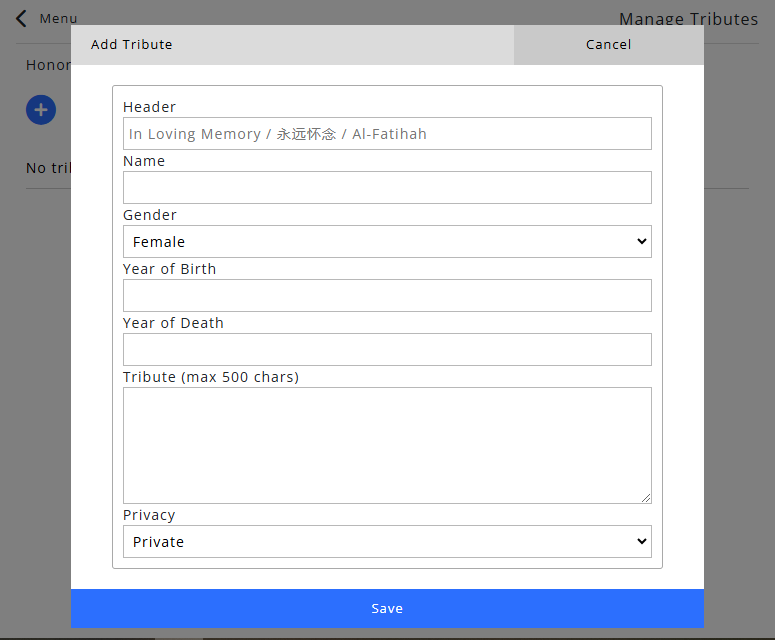 From the User Dashboard, select the Tributes button under the Value Added Features.
