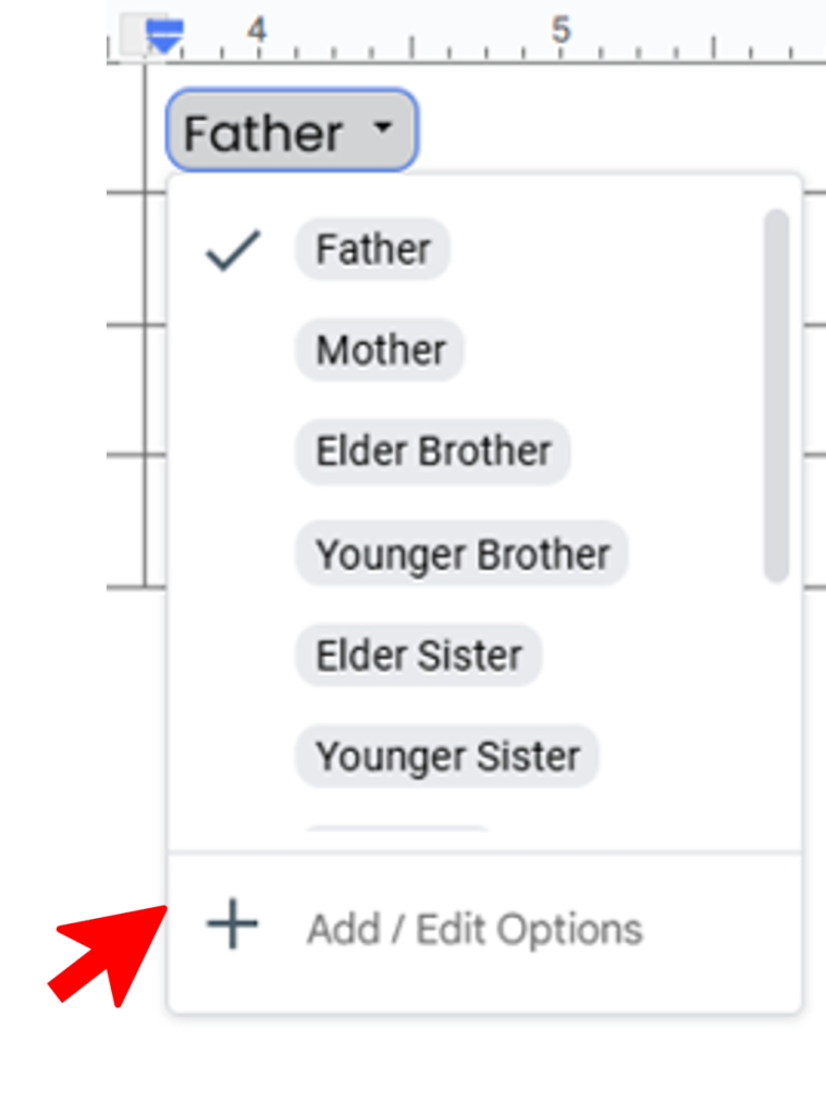 Sometimes, you may need to duplicate a dropdown menu, for example under the Family Member section.
