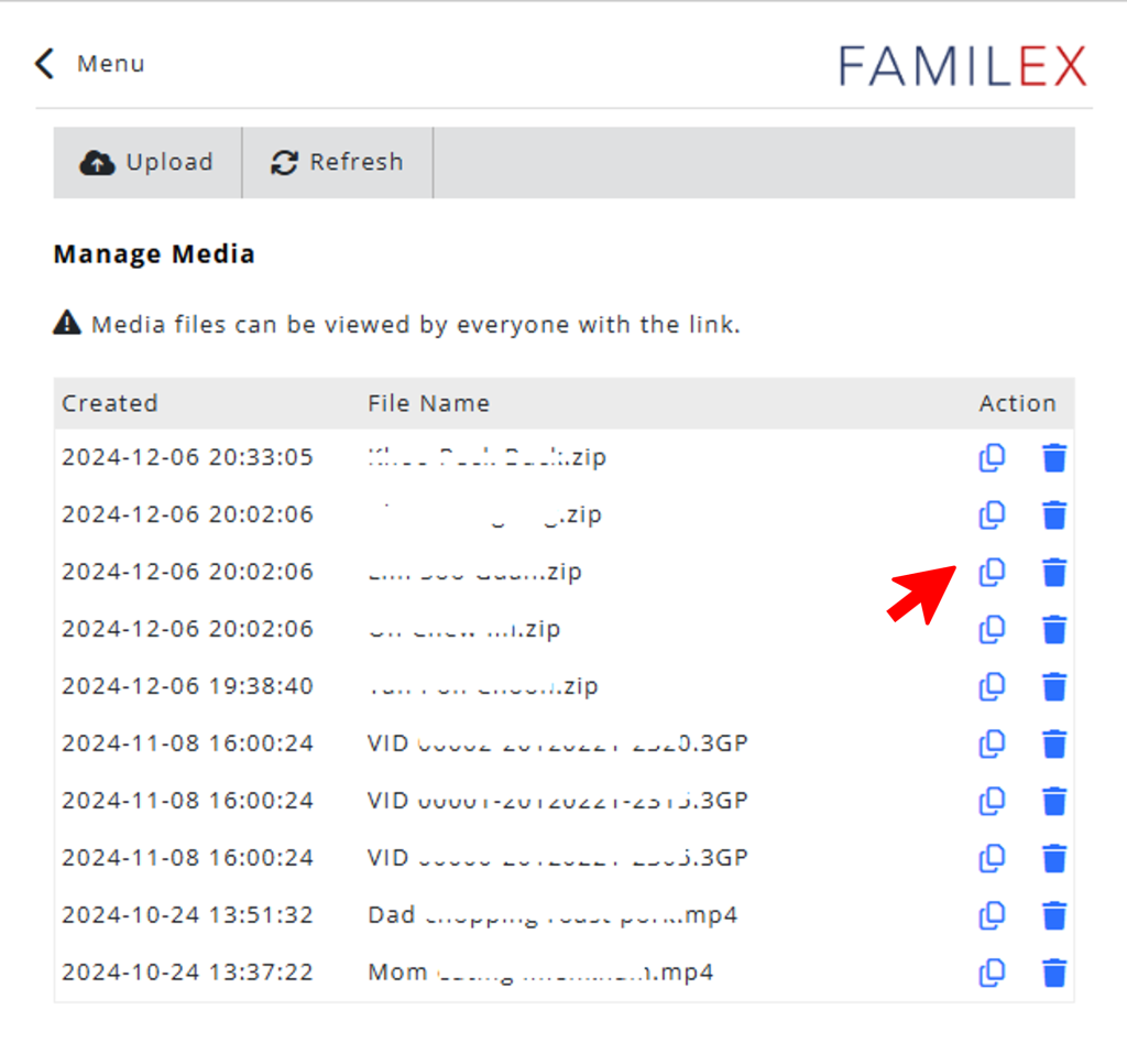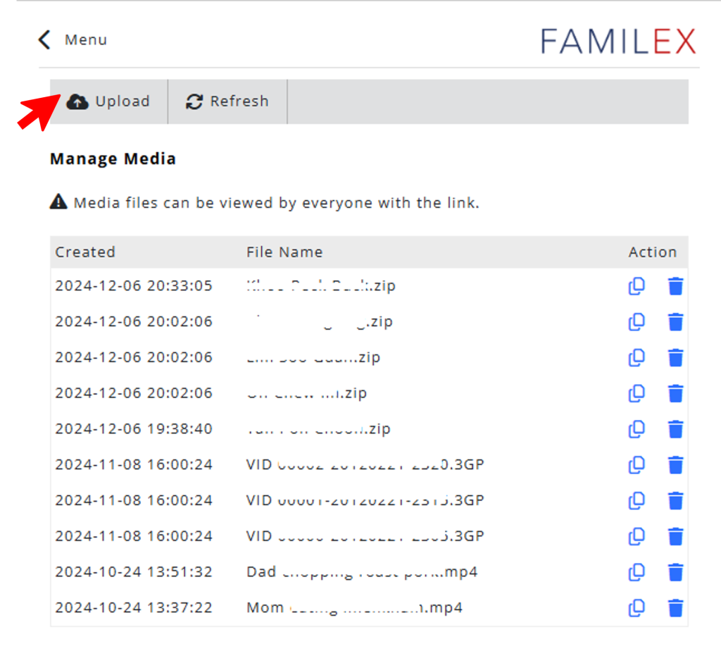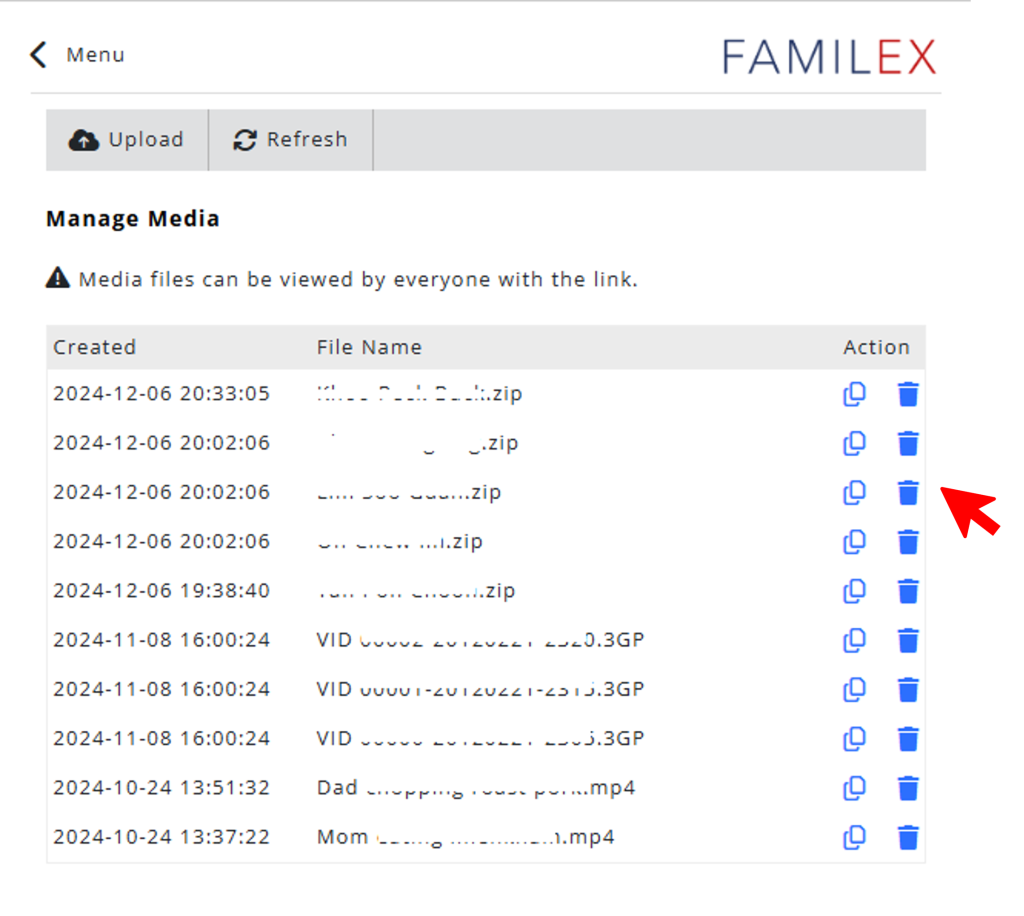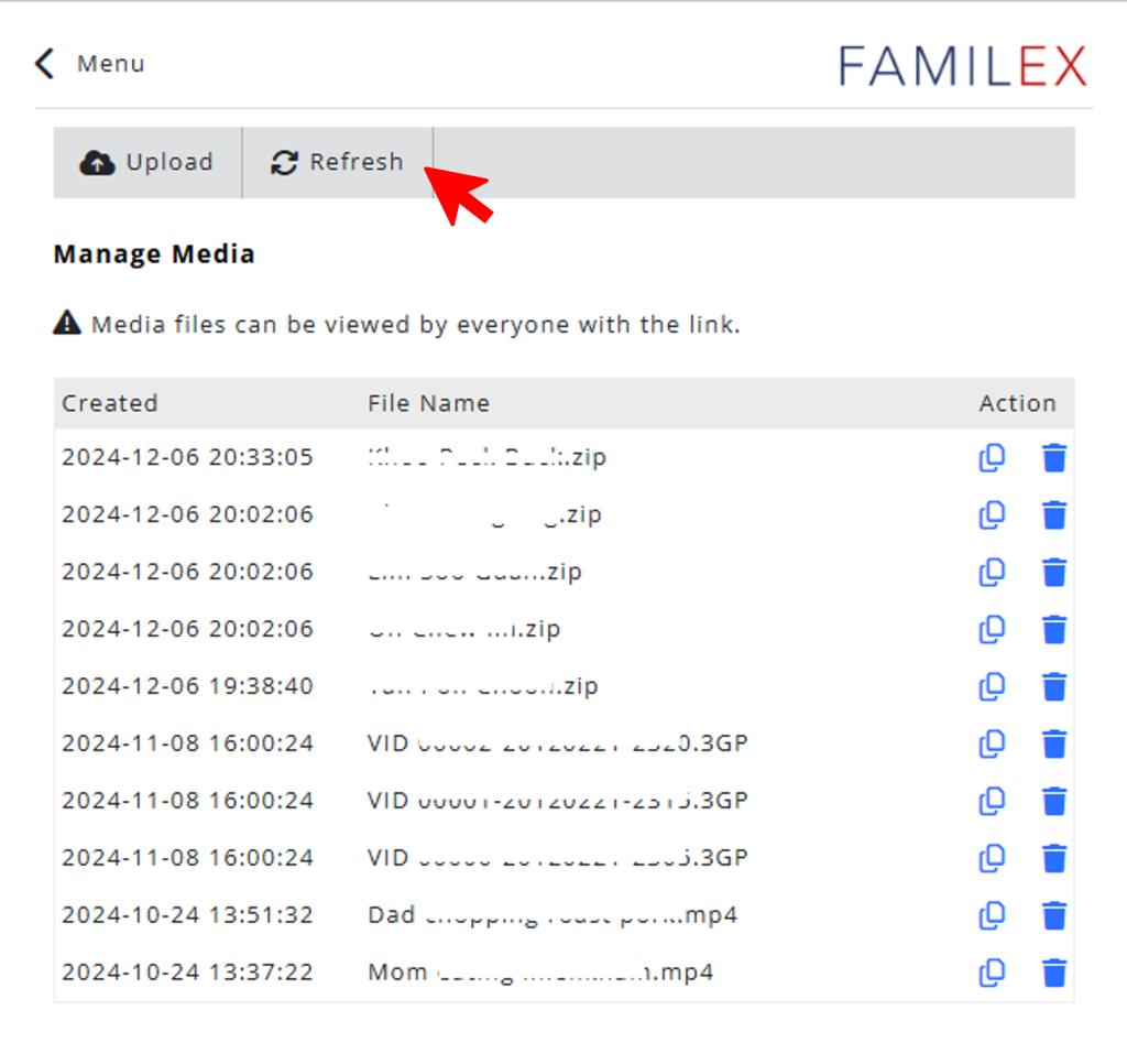 Click the Refresh button so that Rednote/Familex will move your recently uploaded media files to a secured storage location.
