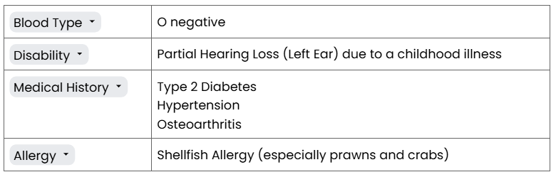 To enter text information, simply click the dropdown menu, select options related to the section and person, then enter the information accordingly.