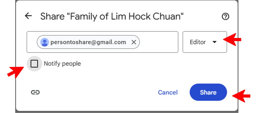 Click Notify Party if you want Google to notify the sharing to the Share-To Party.