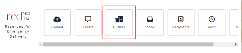 Within the Rednote User Portal, click on the Outbox button under the Rednote section menu.